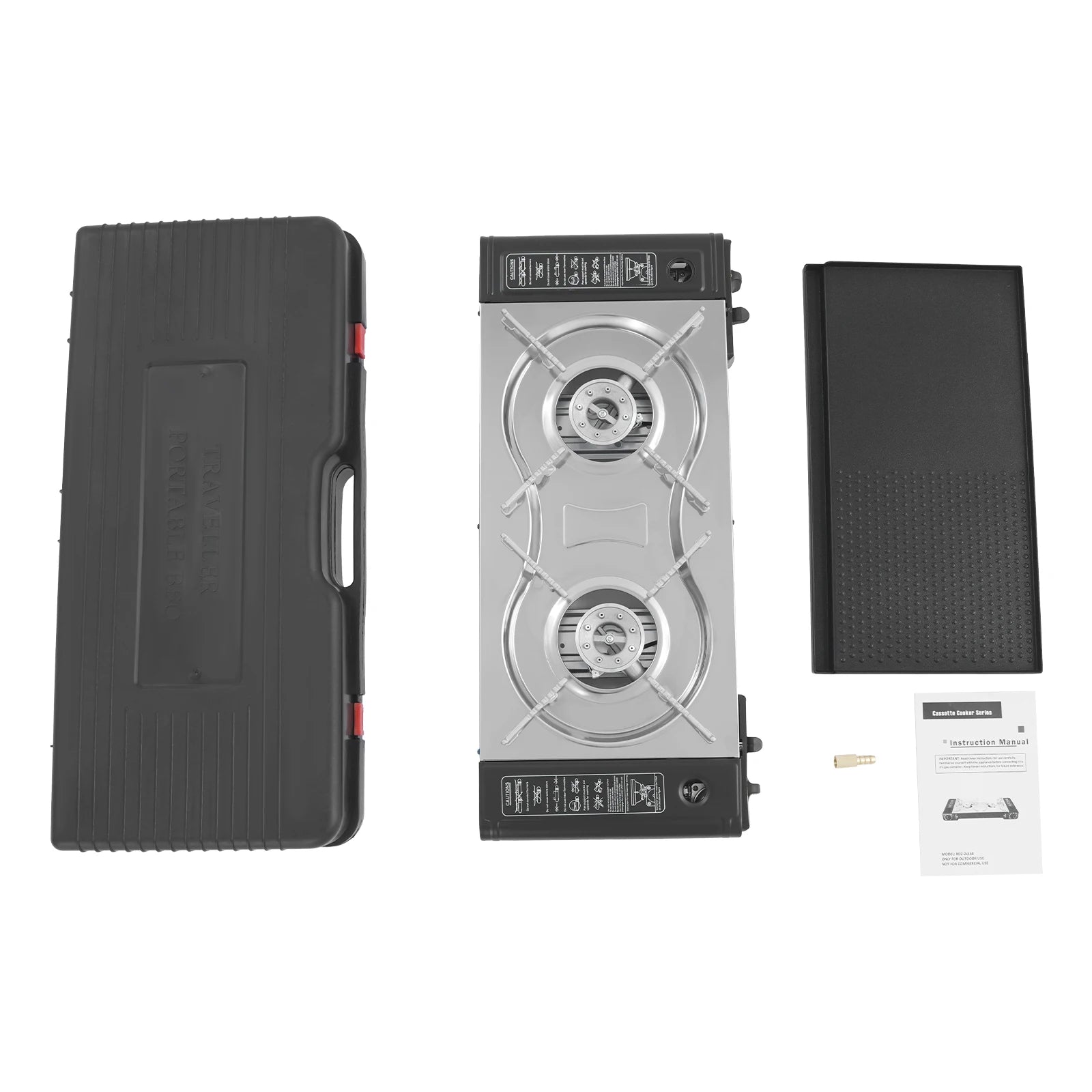 2 Burner Camping Butane Stove With Grill Pan For Cooking