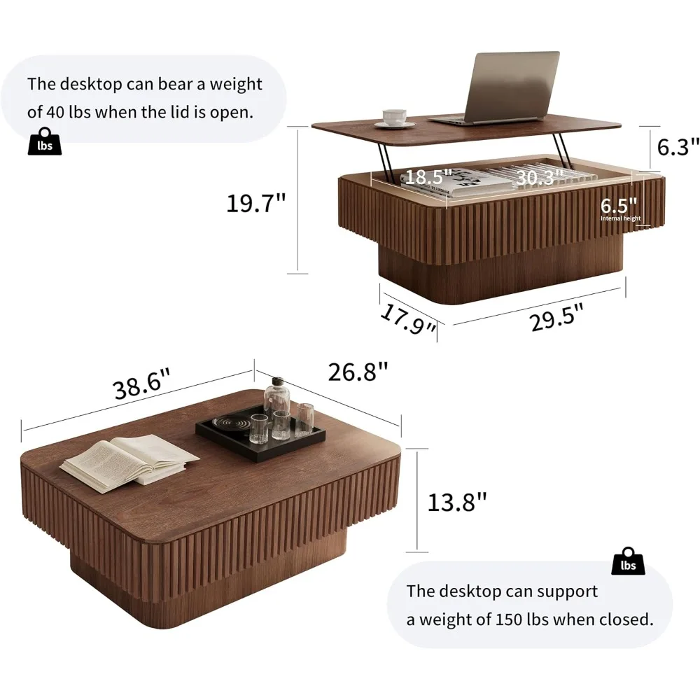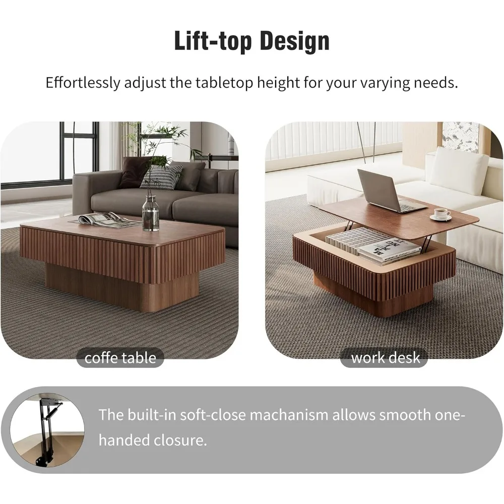 - Square Fluted Design: This lift top coffee table for living room is presented as two stacked rectangles as a whole. Combines sleek, modern lines with a warm wood grain finish, adding minimalist elegance to any room.
