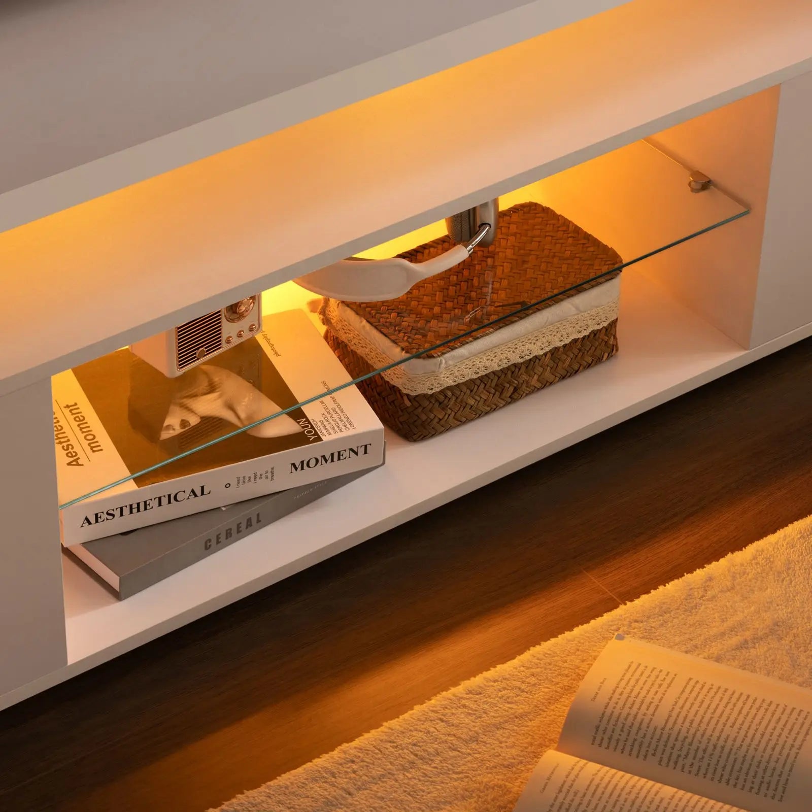 Cubehom LED TV Stand White Entertainment Center, Gaming Center for 60 65inch TV with Storage, TV Stands for Gaming Living