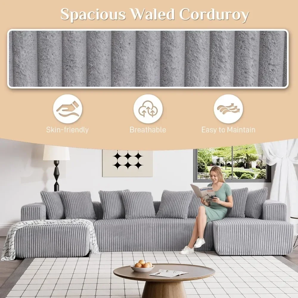 Modular Sectional Sofa in Corduroy with Memory Foam for Living Room, Modern Deep Seating
