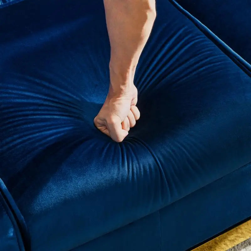 Elevate your living room with the 81" Luxury Velvet Chesterfield Sofa Set in navy velvet, accented by gleaming gold stainless features for instant glamour and timeless charm.